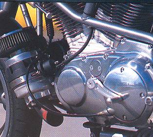 Die athletische Lightning entfaltet zwar auch mächtig Kraft, sobald man die Drosselklappe öffnet, doch geht es hier recht sanft vonstatten. Ohne Aufsehen, Brüllerei und Vibrationen zieht die Maschine nach vorne, und das in jedem Drehzahlbereich. Der langhubige Sportstermotor schöpft seine Kraft aus dem Hubraum und dem Keller. Ab 2000 U/min ist nutzbare Leistung vorhanden. Mit einem kleinen Einbruch bei 3500 U/min geht es bis 6000 Touren vehement voran. In welchem Gang man fährt, ist eigentlich egal, der Drehzahlmesser ist überflüssig, wenn man am Anschlag ist, wird eben der nächste Gang genommen. Die Maschine ist so lang übersetzt, daß der letzte Gang praktisch als Overdrive fungiert, bei 4000/min läuft die Buell fast 160 km/h.