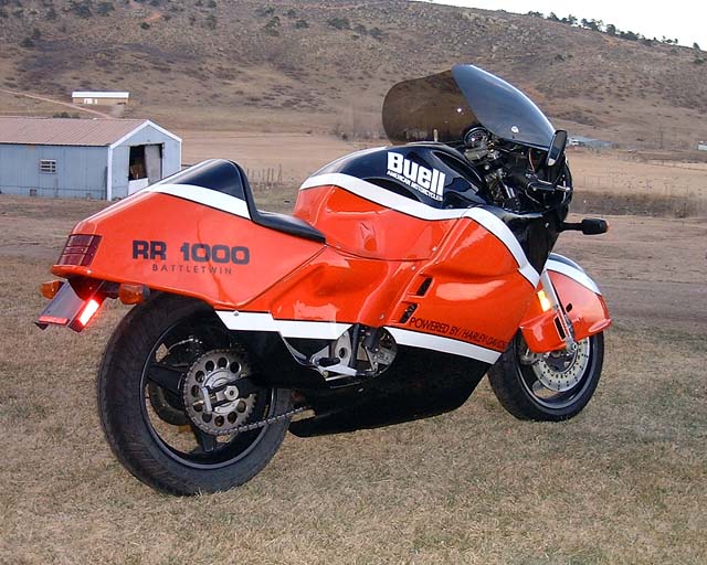 1987 baute Erik Buell die RR1000 Battletwin in einer Auflage von 52 Stück. Eine davon kam mit einem Meilenstand von 229 im Mai 2007 ins Ebay. Von dort stammen die Bilder und die Vorlage der Übersetzung: