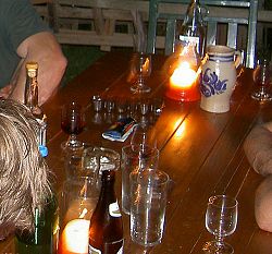 Zu zweit auf einem Mopped sind wir die exquisite Straße runter nach Bozen zu Willi gefahren, der die Italienische Dependance der Firma LuckyHands beherbergt, wo zufällig auch der Firmeninhaber himself und die ganze tiroler Großfamilie bei allerlei Südtiroler Leckereien und selbst produziertem Rotwein in der gemütlichen Laube in den Weinbergen saßen. Das Essen, Trinken und Quatschen ging die halbe Nacht, während im Hintergrund die Autostrada rauschte und über den Bergen Wetterleuchten zuckte.