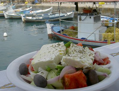 Am Hafen von Githio herrschte ungefähr das feuchtwarme Klima von Abidjan, wenn kein Wind weht. Im Restaurant, 30cm neben dem Hafenbecken Taramas, Salat und Käse genossen, dazu Kaffee und literweise Hydro. Die Fahrlust hält sich heute in Grenzen. Um nicht gleich wieder in die zum Abdampfen unter den Tisch gestellten Stiefel steigen zu müssen, füttern wir Hafenbecken-Fische mit Brotresten. Es kommen immer mehr und immer größere Fische, die das Brot bis auf den letzten Krümel vertilgen.