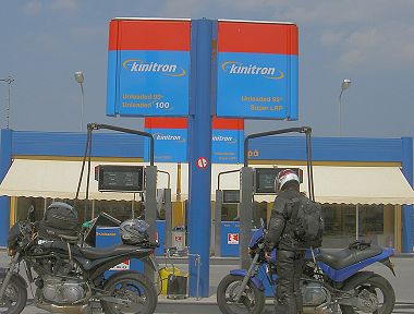 In Sparta das Unglaubliche: Einer Tankwärterin (ja, hier wird man bedient!) sage ich, dass wir unleaded 100 wollen, ich zeige aufs Schild, sie versteht englisch. Sie nickt. Sie sagt "hundred". Und greift den falschen Schwengel und füllt 95er ein, was wir erst nach Bezahlen gemerkt haben. Wenn ich durch die Hitze nicht so friedlich gewesen wäre, hätte sie die klopfende Brühe absaugen müssen.