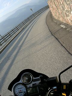 Wir haben gar keine Lust, jetzt nur noch Strecke zu machen, obwohl wir in 2 Tagen über 1000km abreißen müssen. Eiserner Grundsatz: Keine Autobahn! Bisher hielten wir das durch. Ach ja, da war ja noch die elegant-schnelle Strecke von Bozen zum Ritten rauf, mit den vielen 180°-Grad-Kurven mit der wenig bekannten und äußerst attraktiven Verbindungsstraße runter zum Sarntal, die man gut mit dem Penserjoch verbinden kann, um in Sterzing einen letzten Espresso zu zutscheln.