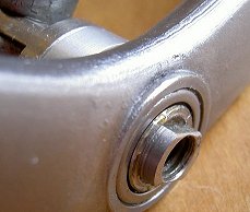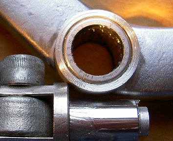 Lucky baute ein breites, abgedichtetes Nadellager ein. Auf die Achse der Fußraste wurde ein Innenring aufgebracht, der Schalthebel selbst bekam einen "Anbau", damit das Lager möglichst breit sein kann. Ergebnis: Das Schalten ist eine Wonne!