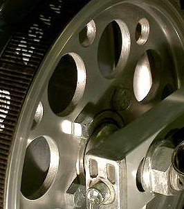 Alu-AchsmutternUm den ungefederten Massen auch noch das letzte Quäntchen an Masse abzuringen, wurden die Achsmuttern gegen solche aus hochfestem Flieger-Alu ersetzt (StenzelParts). Das adäquate Werkzeug zum Radausbau ist so leicht, dass der Alu-Schlüssel sogar im Tankrucksack mitreisen darf (LuckyHands). |