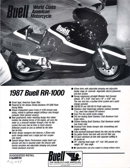Die Buell RR1000 war Erik Buells erstes Serienmotorrad, von denen 52 Stück in seiner Garage in Wisconsin hergestellt wurden: Ein Prototyp, das von Don Tilley gefahrene Raced Bike "Lucifer's Hammer II" und 50 normale. Eine 50er-Auflage war Voraussetzung zur Teilnahme an der Renserie "Battle of Twins". Erik begann die Produktion 1986, abgeschlossen wurde sie im Frühjahr 1988.